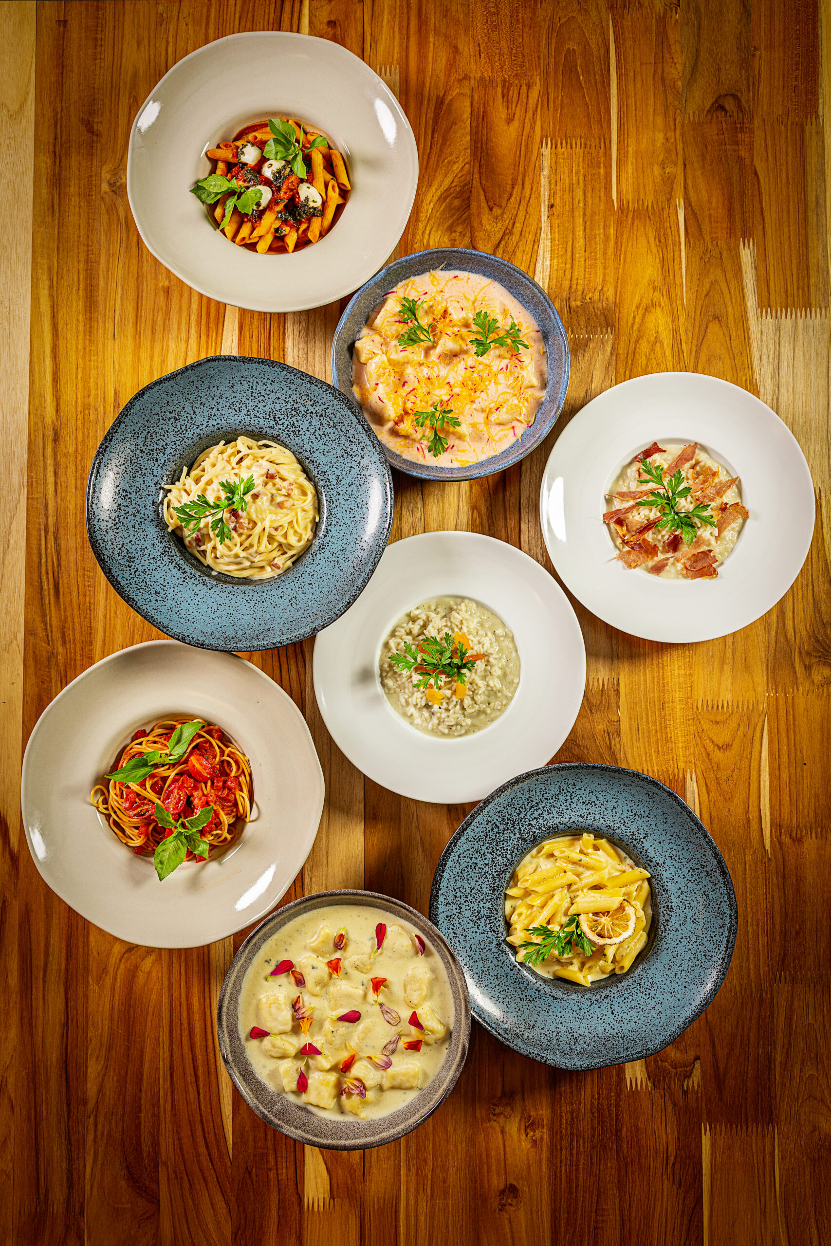 Foram selecionados oito pratos do cardápio tradicional para compor a nova aba. Entre eles, estão os Escalopes com risoto de Emmental em crosta, Escalopes com espaguete parmesão e bacon, Risoto de filé com funghi, Risoto de camarão caprese, Camarão crocante com risoto de brie, além dos nhoques, que podem ser servidos com molho pomodoro ou fondue de queijo, sempre acompanhados de proteína.
