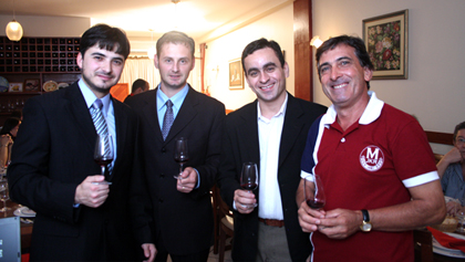 Enólogo Lucas Sartori, o supervisor de vendas da Domno, André Valduga, o dono da Adega São cristóvão, Alexandre Santana e Domingos Carvalho, do Santa Maria