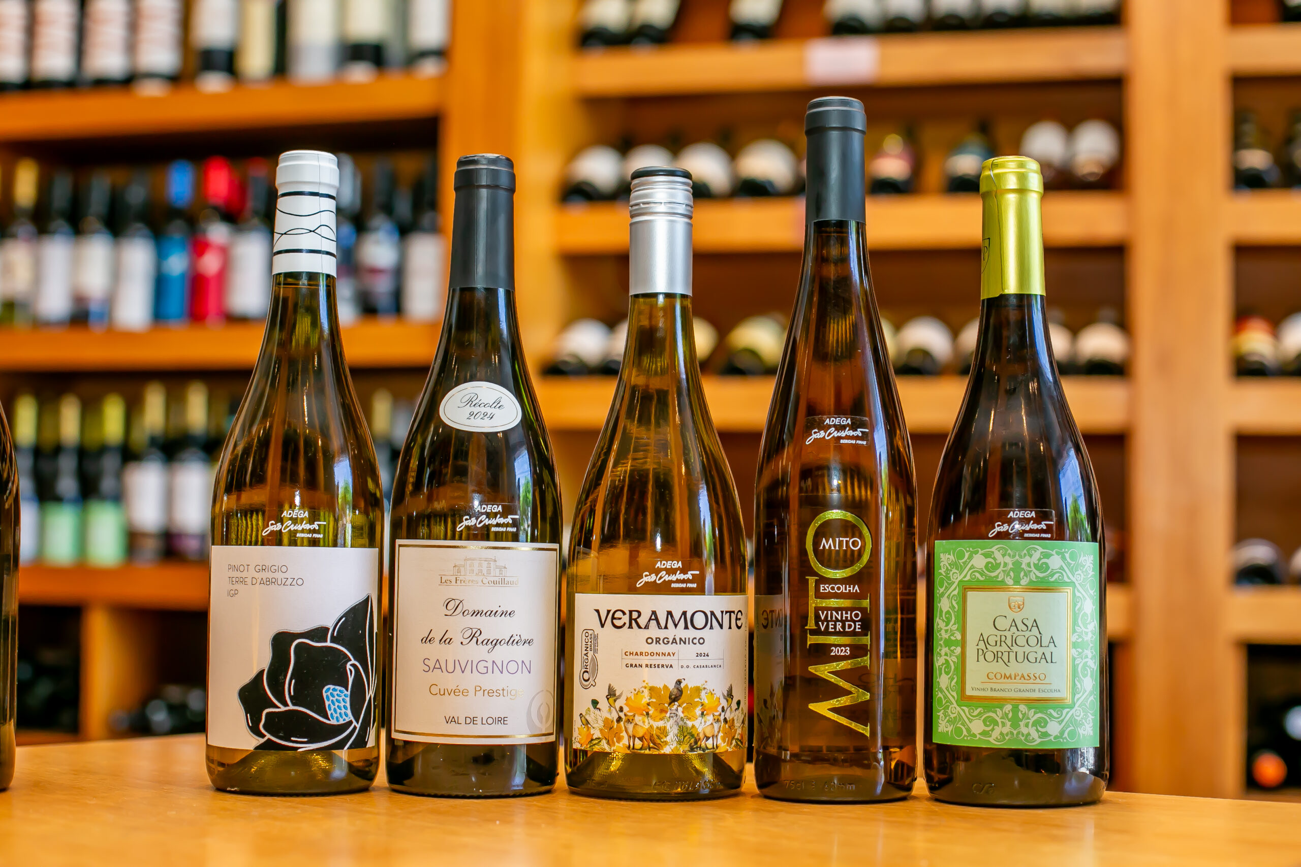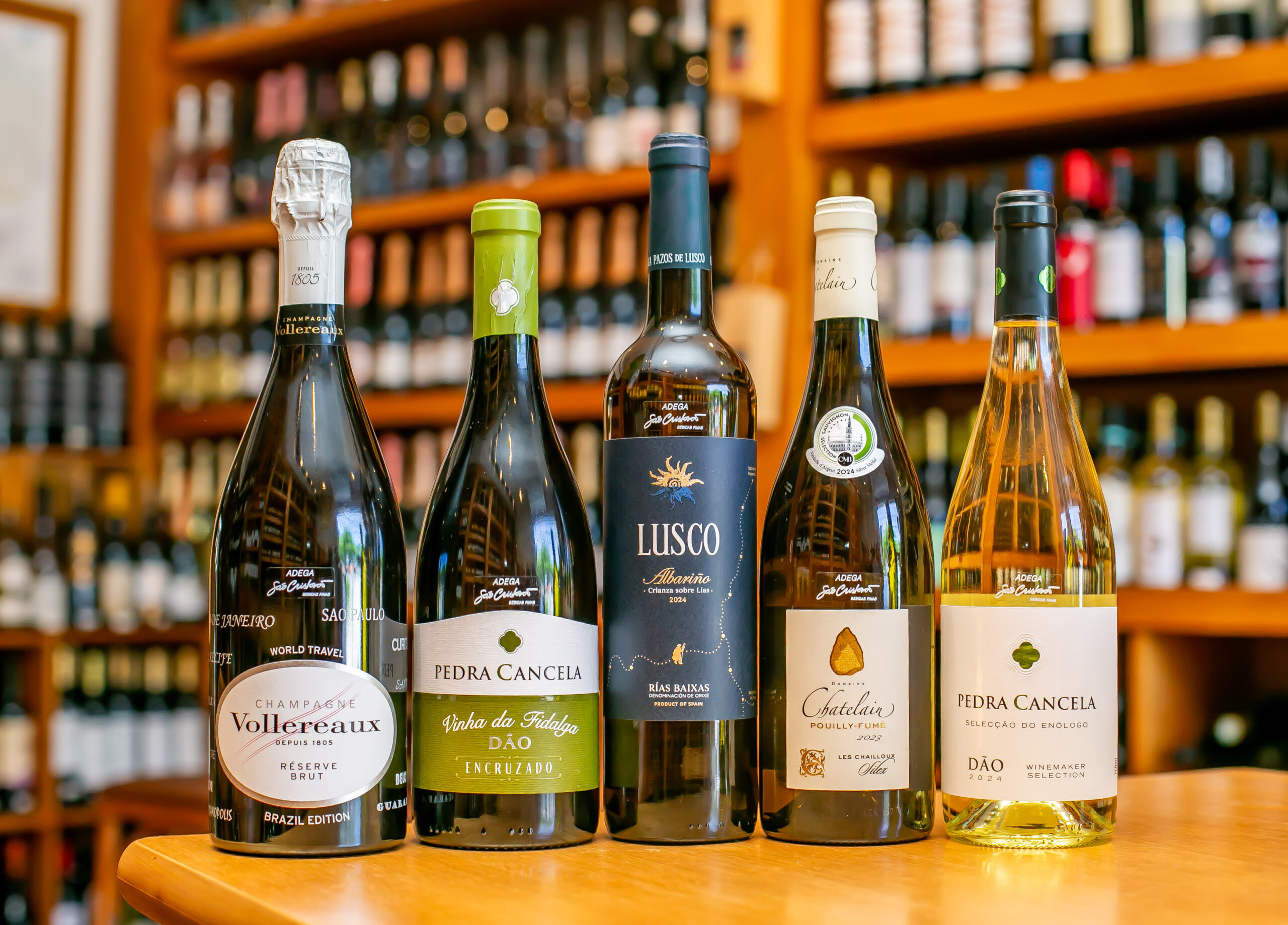 Segundo Alexandre Santana, a seleção reúne rótulos de diferentes regiões e estilos. Os vinhos escolhidos foram: Champagne Vollereaux Réserve Brut; Domaine de la Ragotière Sauvignon Blanc – Val de Loire; Chatelain Les Chailloux; Lusco Albariño – Rías Baixas; Mito Escolha Vinho Verde; Pedra Cancela Seleção do Enólogo; Pedra Cancela Vinha da Fidalga Encruzado; Casa Agrícola Portugal Compasso; Pinot Grigio Terre d’Abruzzo; e Veramonte Organic Reserva Chardonnay.