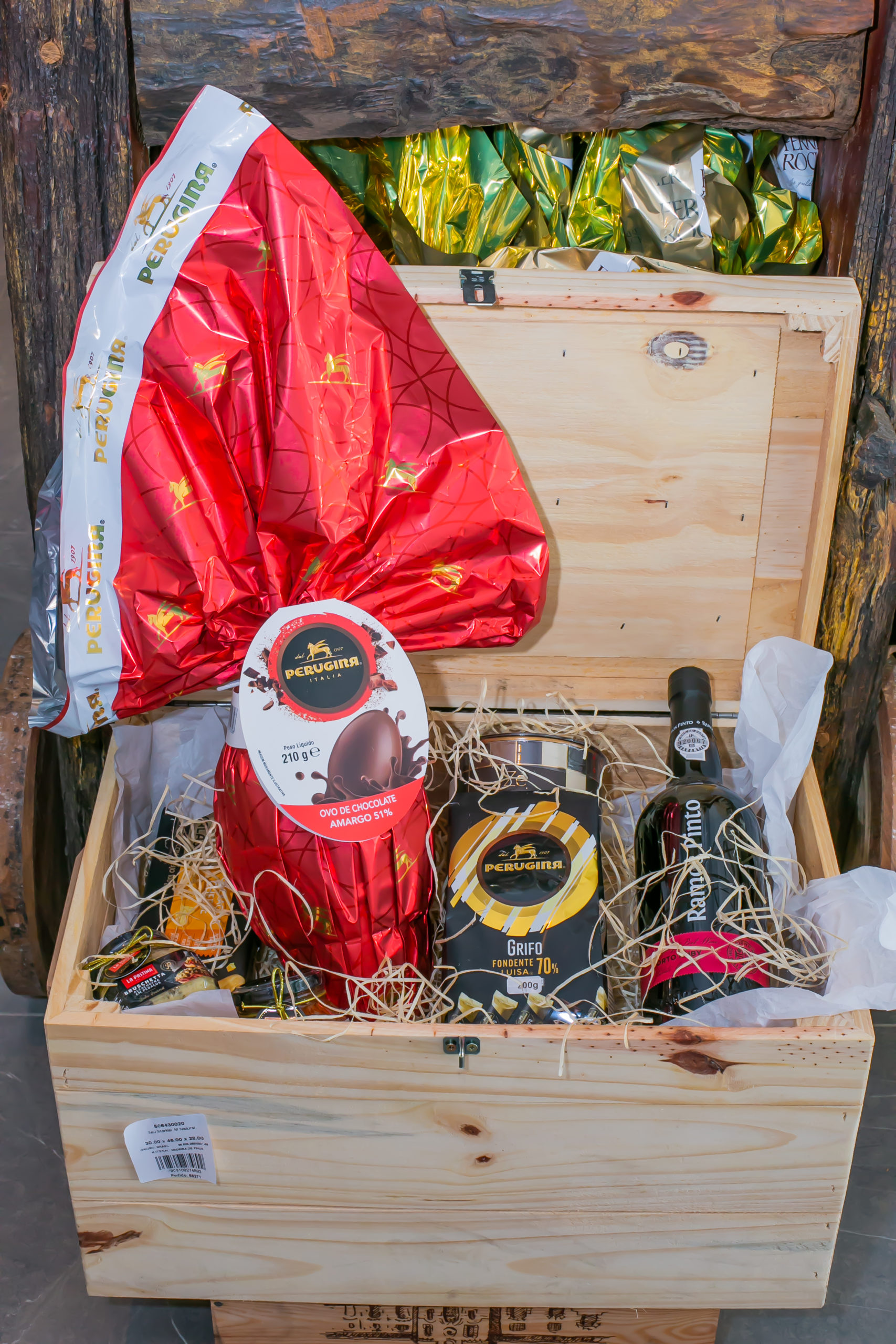 Quem quiser presentear uma pessoa querida, as cestas de páscoa são ótimas dicas. Elas são compostas com chocolates finos e um bom vinho. Mas o cliente também pode personalizar conforme a preferência. São vários modelos de caixa presenteável, inclusive com arranjos de flores secas. E para quem não gosta de chocolates, o empório com muitas opções de geleias, biscoitos finos, castanhas e muitos outros produtos.