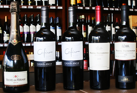Neste primeiro evento organizado pela sommelière foram escolhidos cinco rótulos, um espumante francês, dois vinhos chilenos e dois argentinos.