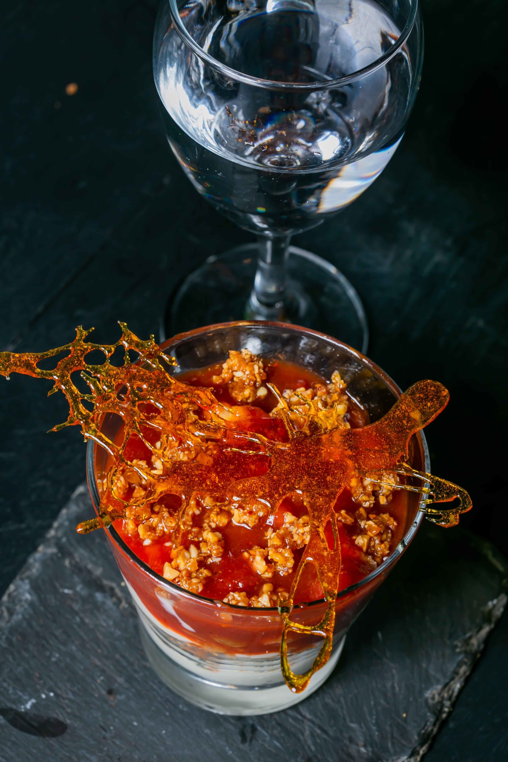 A sobremesa é o tradicional “Romeu & Julieta” servido na forma de verrine com creme de queijo e goiabada, somando-se a um Brownie com sorvete de banana com pipoca, além do badalado “Crème Brûlée”, famoso na região.
