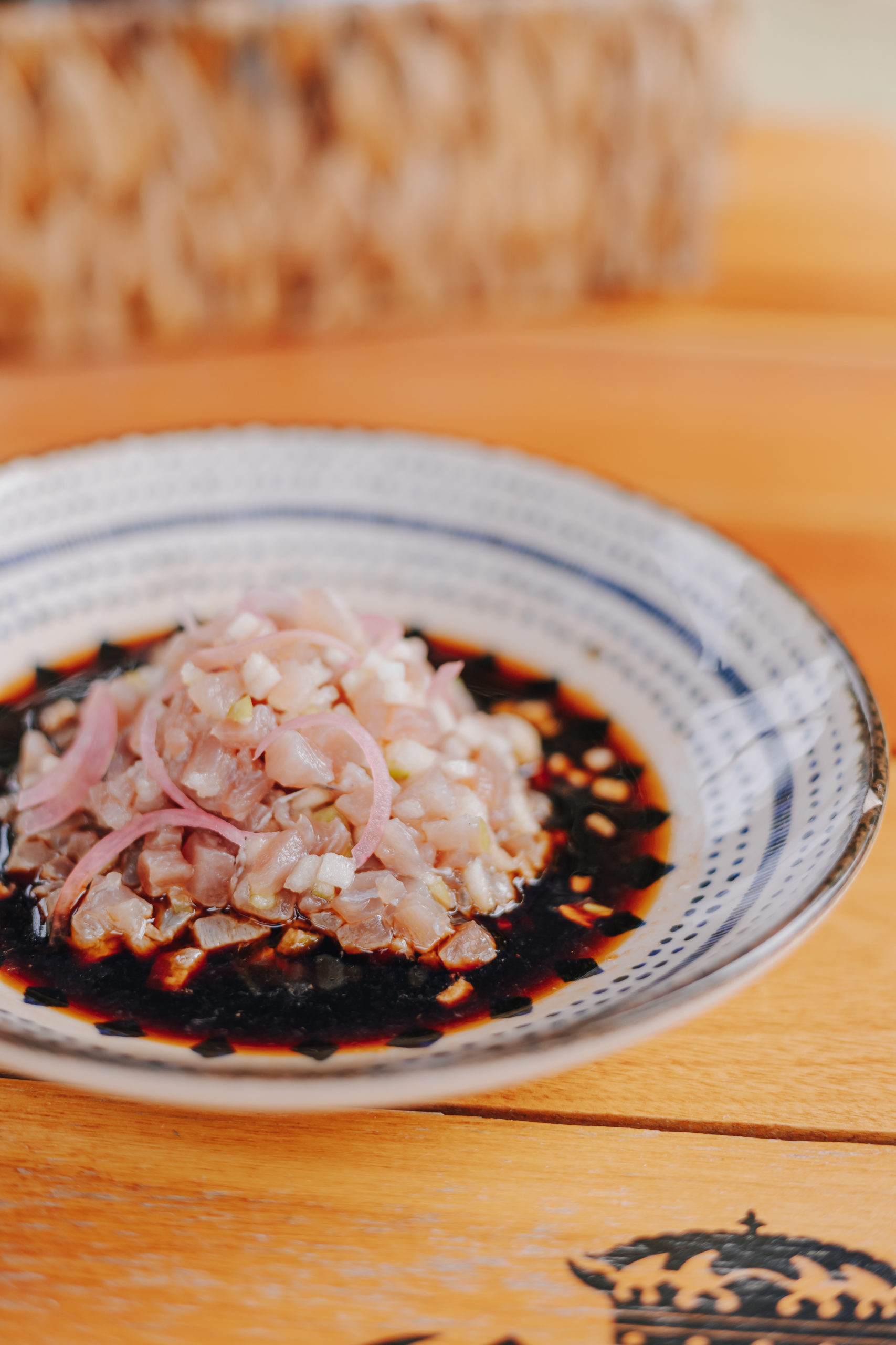 Tartar de mignon, picles de jerimum e crocante de sagu