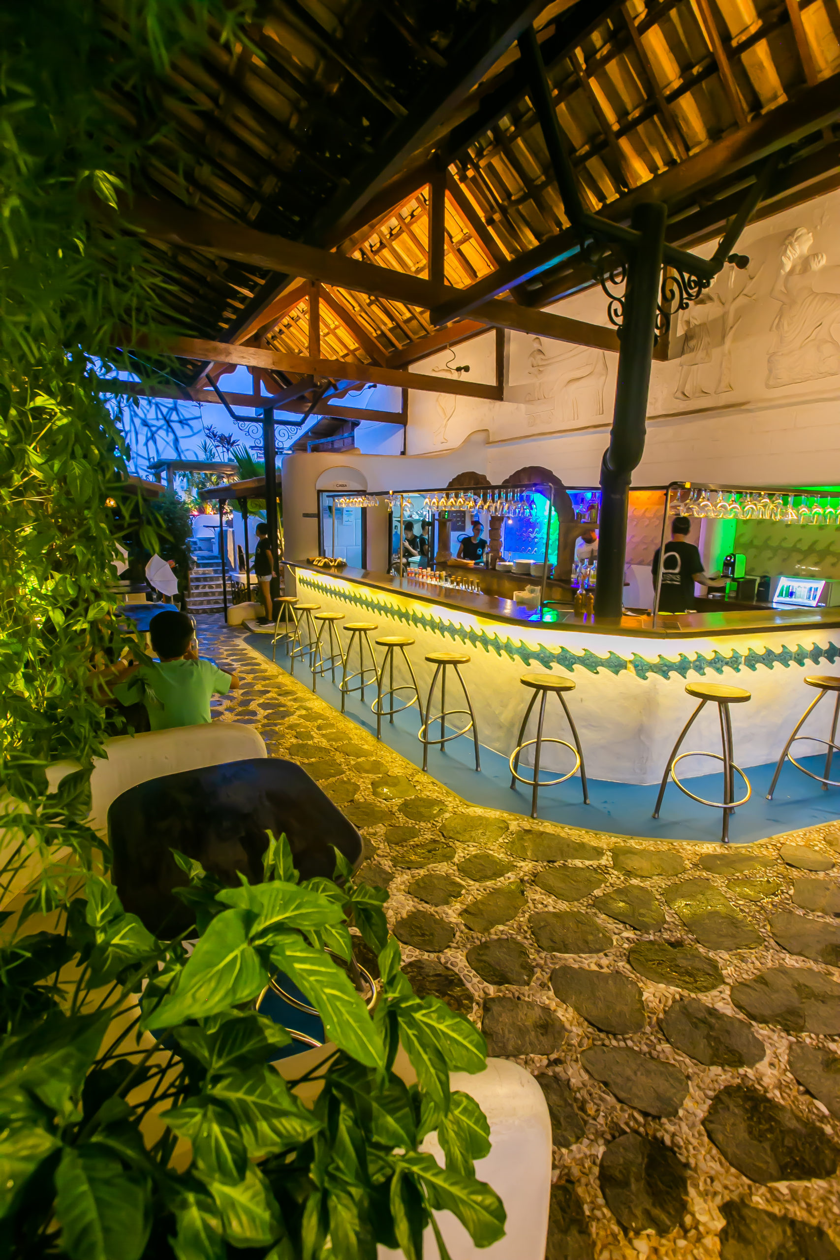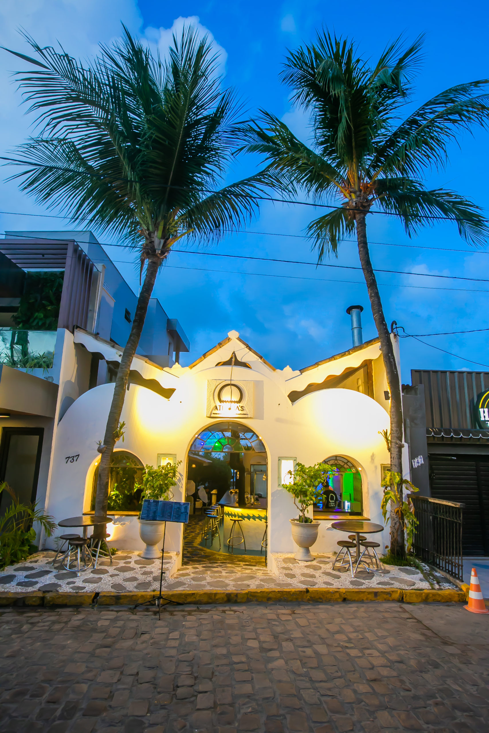 O Athena’s Creperia, Lounge e Restobar tem como proposta oferecer o conforto e uma experiência de imersão. A casa mistura plantas tropicais com arquitetura grega e tem, por exemplo, bancos projetados para que as pessoas que não se conhecem possam interagir compartilhando algumas mesas.