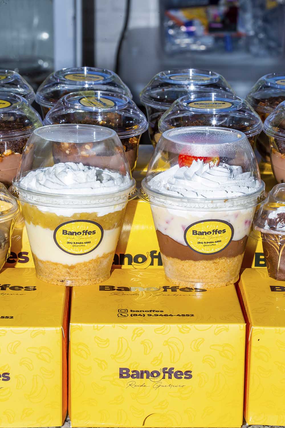 “Por aqui o movimento é intenso, principalmente nos sábados. As pessoas fazem questão de comprovar pessoalmente o que já conhecem pelo nosso sistema de delivery”, observa Raída Guerreiro, proprietária, que fundou a Banoffes em maio de 2020.