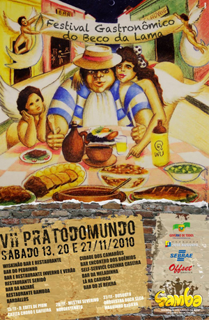 | O Festival Pratodomundo, evento gastronômico e cultural que reúne bares e restaurantes do Beco da Lama e Adjacências, terminou no último sábado, dia 27. O primeiro lugar deu empate entre o Encanto dos Boêmios, com a bisteca suína, e o Bardallos com o pernil suíno. No segundo lugar ficou o bar Lá na Carioca com sua feijoada tradicional. E em terceiro ficou o restaurante Whiskynão com o arroz de queijo com carne de sol .