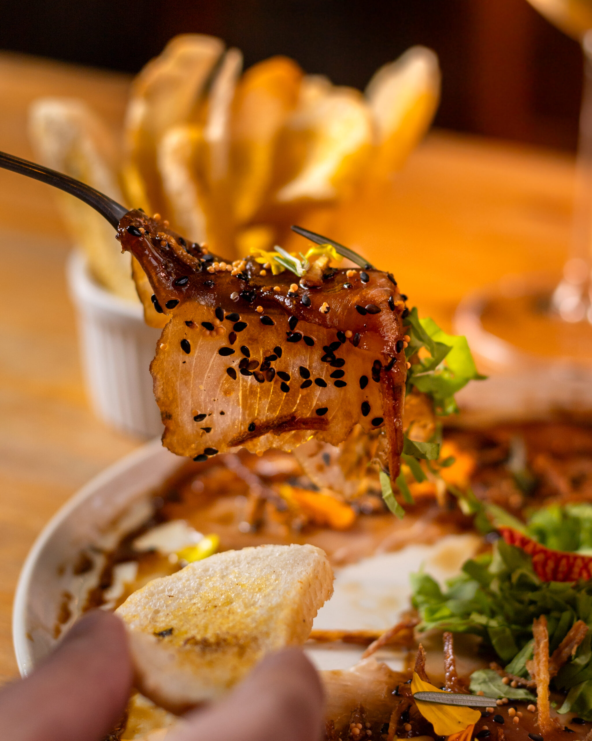 De acordo com a empresária, o marido Jeo Melo, que conduz a operação da cozinha, preparou ainda como novidade o Short Rack (cordeiro), acompanhado de molho especial e risoto de hortelã e menta. Outras atrações incluídas recentemente são o Carpaccio de filé com molho pesto da casa e o Carpaccio de atum com gergelim e molho tarê.