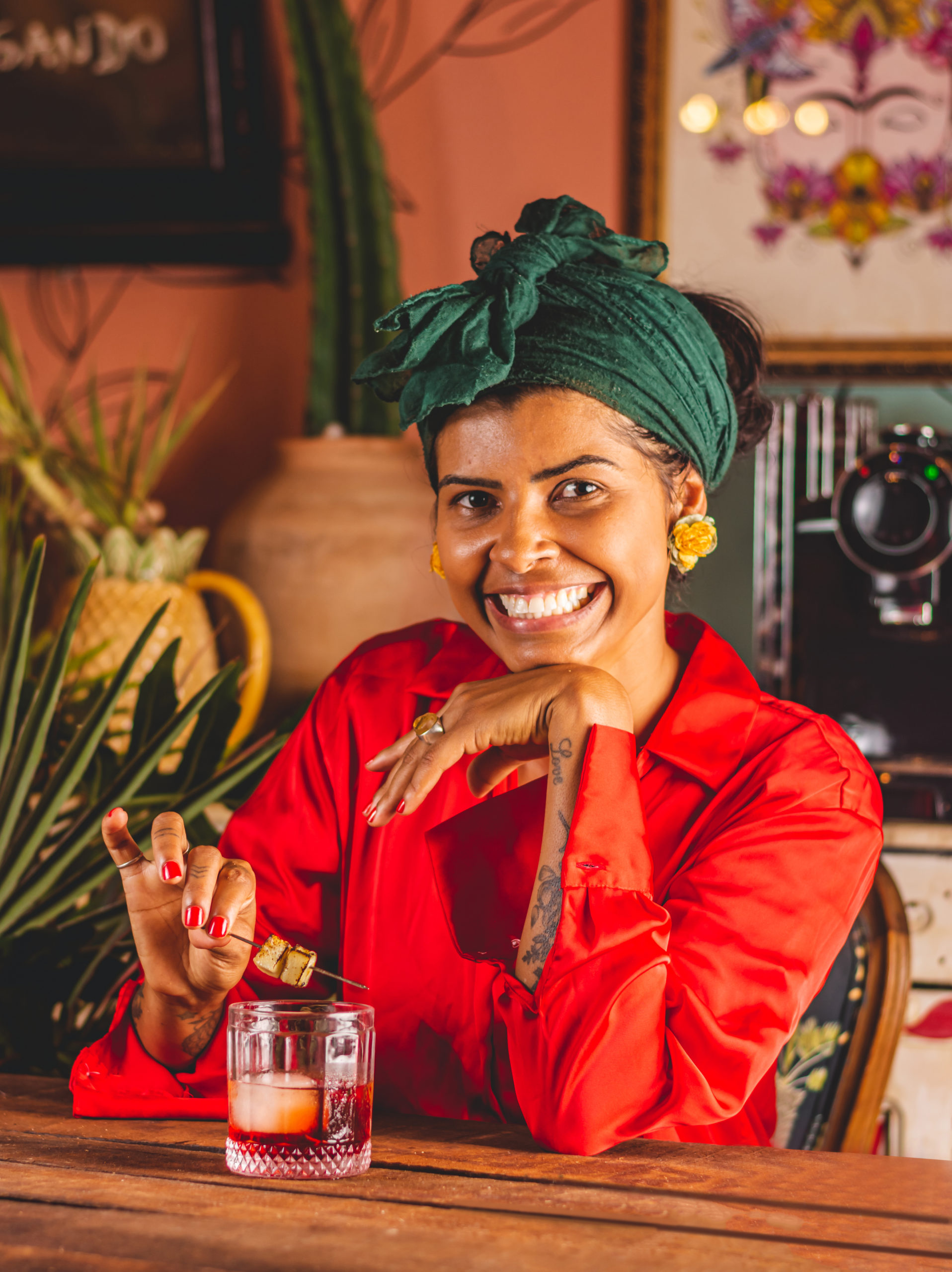 A carta de drinks é assinada pela mixologista Luana Liz, do badalado Levú Drinks, em Natal. Ela fez uma releitura bem tropical do clássico negroni. A bebida leva hidromel Beerita, vermute tinto, Campari, caju e chega à mesa com uma porção de queijo coalho defumado. Na carta, ainda entraram outras novidades criadas pelo bartender da casa Vitor Silva, natural de São Miguel do Gostoso.