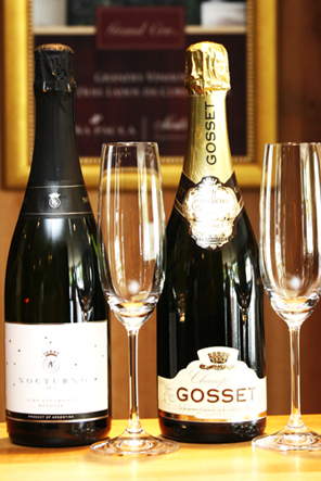 Na distribuidora Grand Cru, encontramos o espumante argentino Nocturno Brut, da região de Mendonz. Composto pelas uvas Chenin Blanc e Ugni Blanc, tem aromas florais e de frutas brancas. A garrafa custa R$ 32. A opção de champanhe é o Gosset, produzido pela mais antiga fabricante da França, a Maison Gosset, fundada em 1584. A garrafa custa R$ 218.