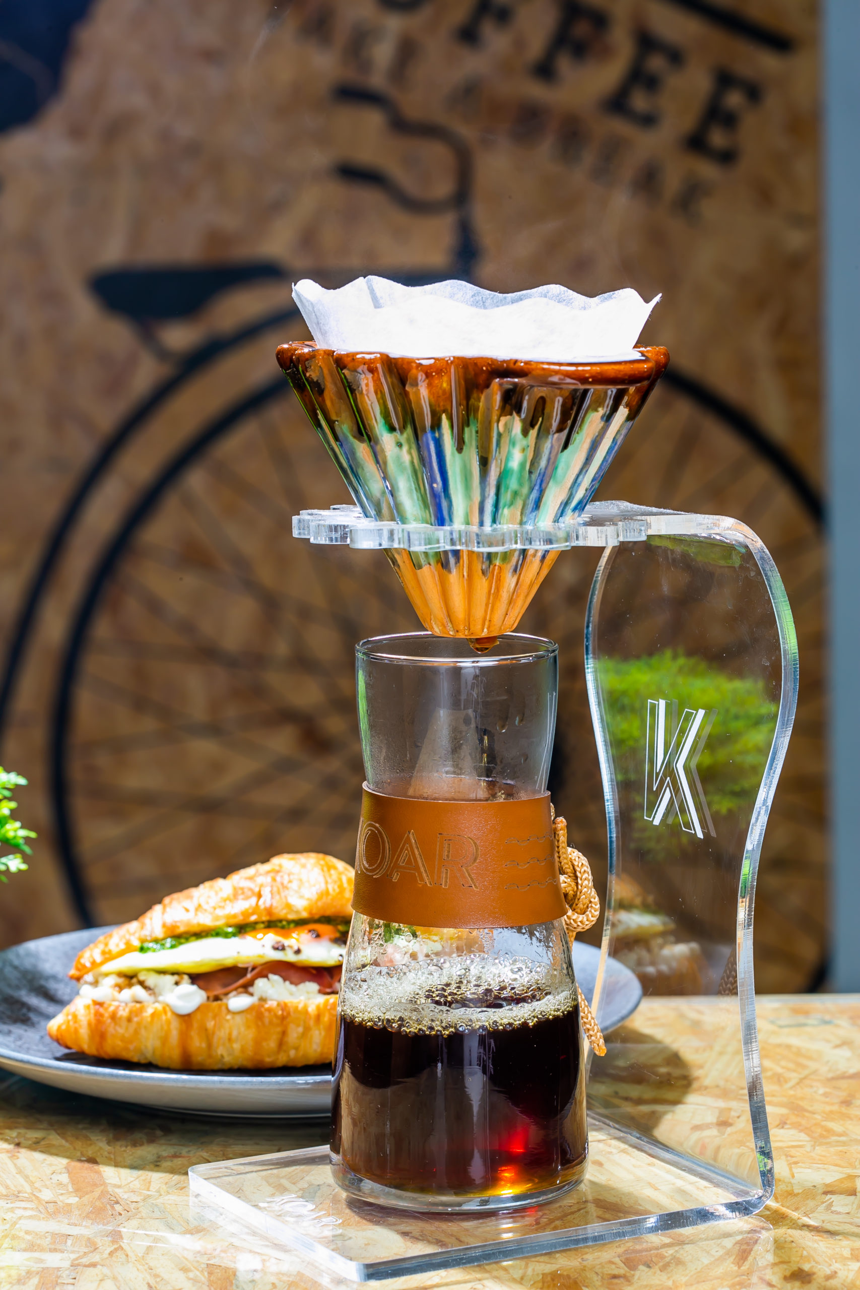 O menu, bastante diversificado, traz cafés, chás gelados, sobremesas e pratos salgados com elaboração e consultoria obtida junto aos chefs Marcos Nery e Matheus Brito. A seção dos cafés, por sua vez, ganhou a parceria da famosa marca paulista Santo Grão, apresentando grãos selecionados e premiados das regiões Mogiana, do Sul de Minas e do Cerrado Mineiro. Constam no cardápio os espressos tradicionais (machiatto, americano, pingado, capuccinos e mocha), cafés gelados (espresso tônico, affogato, shake de café e iced latte rapadura), bem como cafés nos métodos filtrados Hario v60, Prensa Francesa e também no novo Koar, este, tipicamente brasileiro.