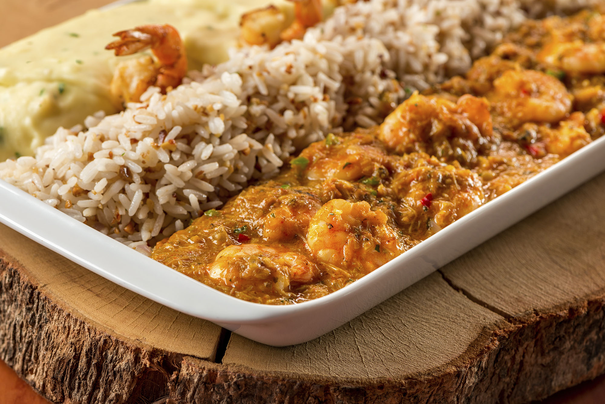 Caio Edson, sócio operacional que hoje acompanha os pais José Germano Filho, o “Tuca”, e Edna Bezerra (fundadores do restaurante) na rotina da casa, lembra que o item mais pedido no variado cardápio que traz 12 pratos de camarão e 10 de peixe, é o Camarão Manguezal, composto por camarões refogados na manteiga da terra com verduras, carne de caranguejo e leite de coco. É servido junto a arroz com castanha de caju e purê de batata.