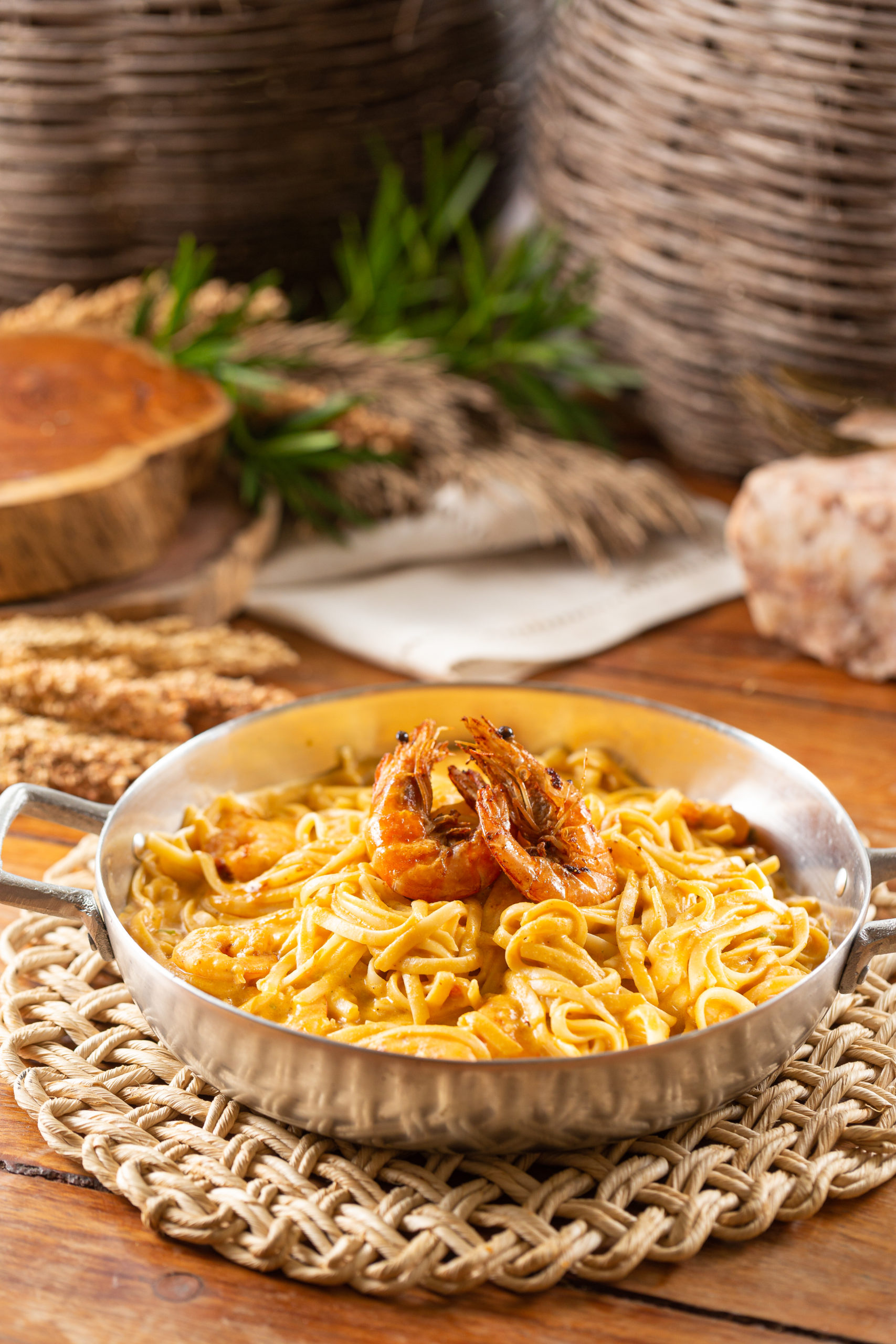 O Camusquim de Camarão torna-se, por sua vez, o novo prato principal para duas pessoas. Uma receita do Norte bastante antiga, que a cozinha do Tuca adaptou: camarões refogados com verduras, molho de camarão no linguine ao leite de coco e dendê, servido com cramble crocante de pão.