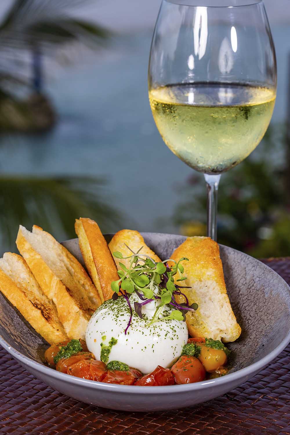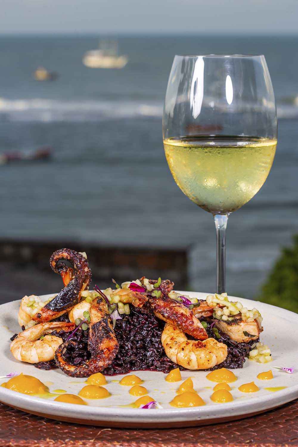 Outros itens incluem o Polvo à Siciliana com batatas grelhadas no azeite com salsa e limão siciliano tostado, a Burrata com queijo de búfala, pesto de salsa, tomate-cereja confit e torradas, além do Arroz Negro com Polvo e Camarão. O Camarão da Terra é outro prato em destaque rodeado de purê de banana da terra e pérolas de pimenta à base de sagu com geleia caseira de pimenta. Acompanha, ainda, farofa de bacon.