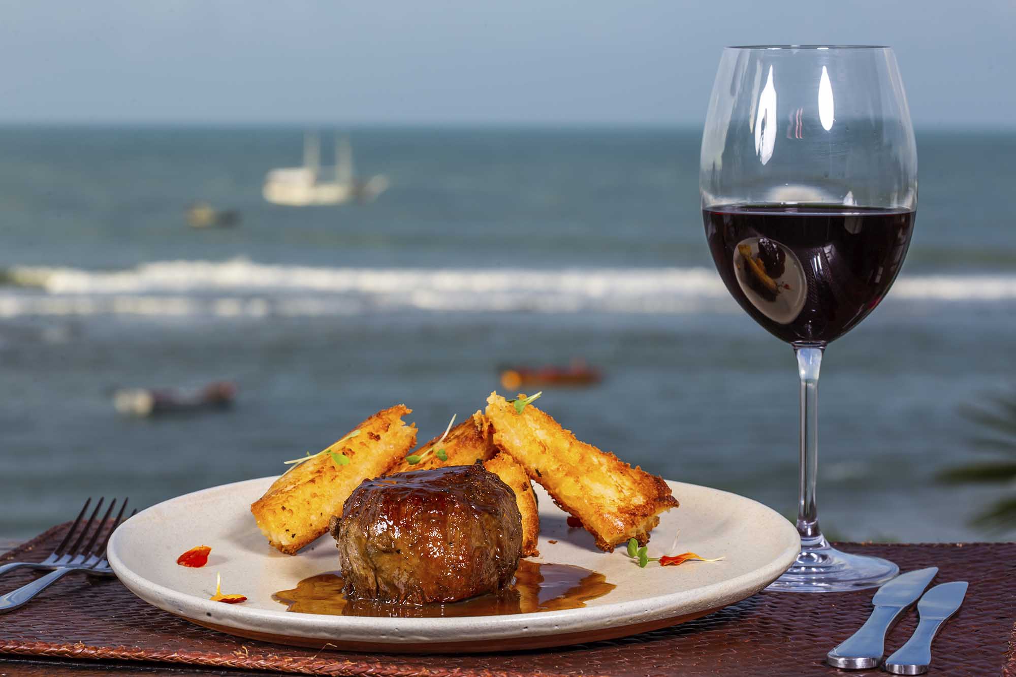 Administrado pelo gaúcho João Zwirtes e a cunhada Taís Martins, o espaço com vista para o mar oferece café da manhã exclusivamente para os hóspedes do hotel, porém é aberto ao público externo para almoço das 12h às 16h, e jantar das 19h às 22h30. “Em termos de cozinha, começamos com uma proposta mais contemporânea, buscando os ingredientes mais regionais, além dos ingredientes da terra”, define João.