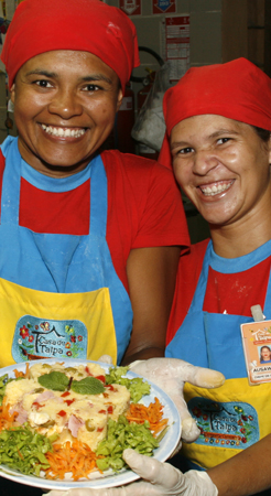 | Funcionárias da tapiocaria apresentam a "Salada Tropical" |