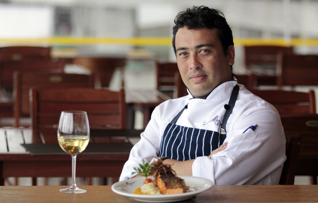 “Também sou sushiman e por ter ligação com o mar adoro cozinhar peixe e frutos do mar. Por isso, desenvolvi esse salmão grelhado com risotto de gorgonzola e chutney de manga”.
