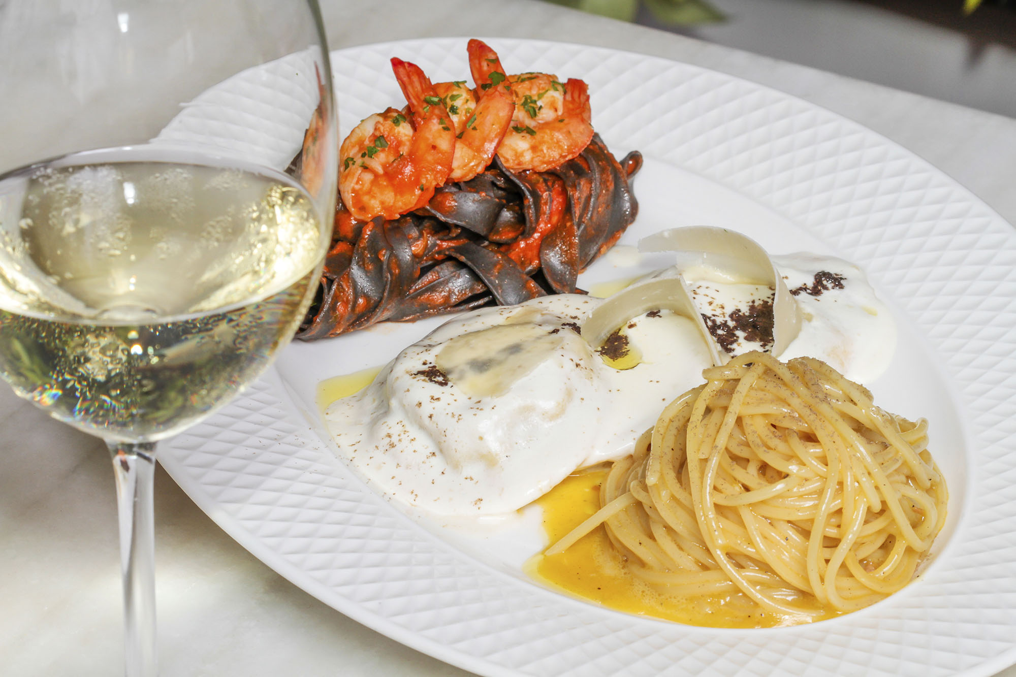 Mas a grande atração do novo cardápio é o Mix Royale Cicchetti, pensado para atender os amantes de frutos do mar. O prato serve muito bem duas pessoas e vem com lagostas à thermidor, mexilhões, caranguejo, vieiras salteadas, anéis de lula, polvo grelhado e camarões.