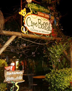 No cardápio da Cipó Brasil estão 41 tipos de pizza, a mais nova dela feita com pesto. Além disso, são várias opções de crepes, tendo como principal o que leva o nome da casa – feito com frango, ervilhas, manjericão, tomate seco e cebola – e 17 tipos de caipirinhas, dos mais variados sabores e sempre mantendo as características da região.