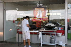 | Antes de comprar, clientes também podem degustar a carne feita na hora |