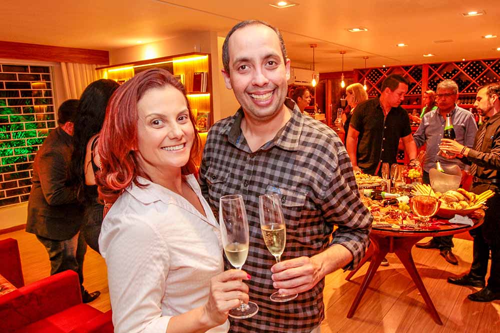 A noite foi regada a espumante e vinho tinto das marcas Bossa e De Martino, respectivamente, acompanhados por pães, frios e antepastos expostos em uma farta mesa assinada pela Platter For You.
