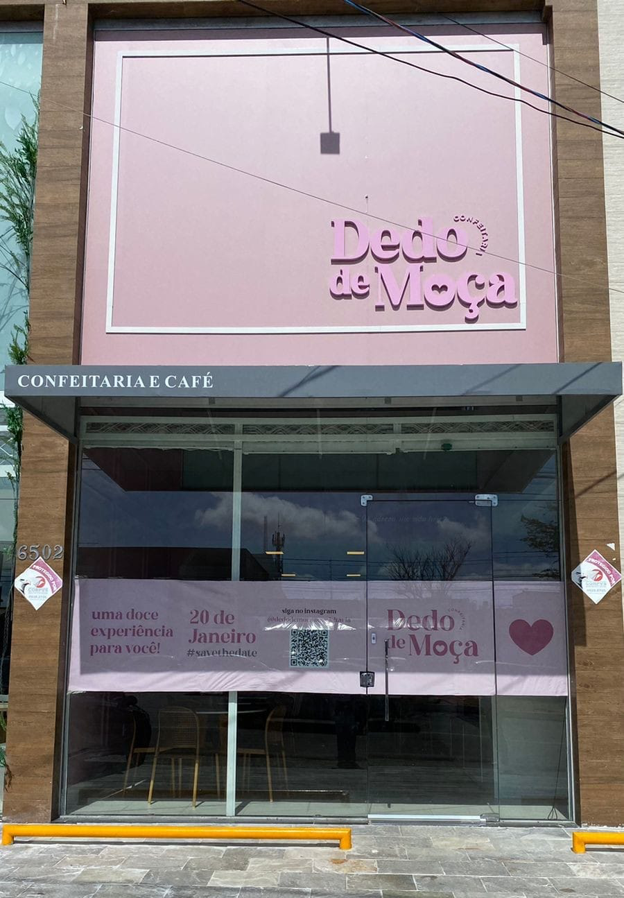 A loja física Dedo de Moça permitirá que seu público tenha, todos os dias, a oportunidade de reviver a memória afetiva que um bolo de festa, assinado por Taynah, proporciona ao imaginário das pessoas. O diferencial dessa moça chic e ousada, nessa nova proposta, é exatamente a produção de bolos, tortas, sobremesas, brownies, bem-casados e brigadeiros para consumo no local e pronta-entrega. O cardápio inclui salgados fritos e assados, além de quiches, empadões e outras delícias. Claro, a máquina de café está só escutando a conversa! Tudo isso merece um bom café ou uma bebidinha gelada.