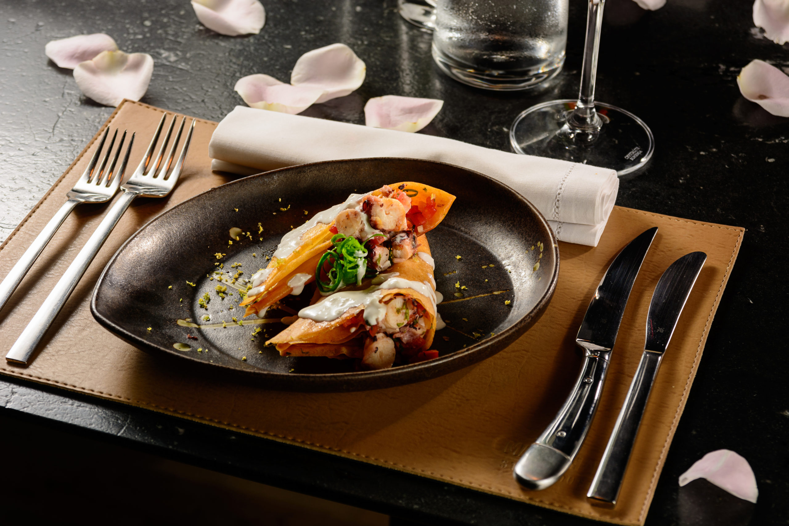 No primeiro, as mesmas opções incluídas no menu do restaurante. Já o jantar terá um menu em três etapas com entradas de Crostini de Caprese ou Taco de Polvo, e Atum selado ou Steak com cogumelos como pratos principais e Cheesecake de doce de leite na sobremesa. “Pensamos em algo bem exclusivo, com um toque romântico para lembrar a data em grande estilo”, observa Marcos Marinho.
