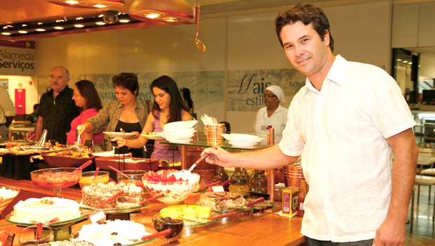 | O empresário responsável pela franquia potiguar, Tom Torres, comemora o sucesso do cardápio junino do Divino Fogão |