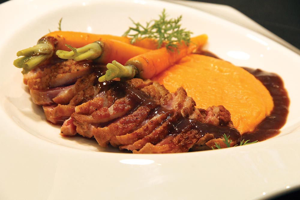 Para prato principal, as novas opções são um magret de pato (servido com purê de cenoura cremoso, mini cenoura glaceada e farofa de bacon) e um lombo de cordeiro (acompanhado de purê de ervilhas e hortelã, farofa de ameixa e molho de chocolate amargo).