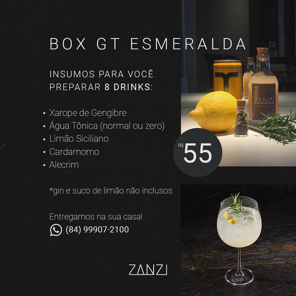 Inaugurada em Natal no mês de dezembro de 2019 para produzir, vender e fornecer drinks em eventos, a Zanzi Coquetéis criou uma linha de kits para distribuição em delivery onde os clientes podem comprar os itens de preparação para fazer seus coquetéis em casa, aproveitando os shows que estão pipocando ao vivo na internet durante a quarentena do CoronaVírus.