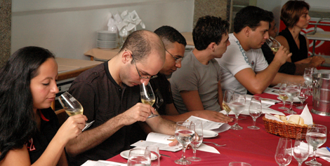 | Garçons fazem a prova organolépticas dos vinhos portugueses |