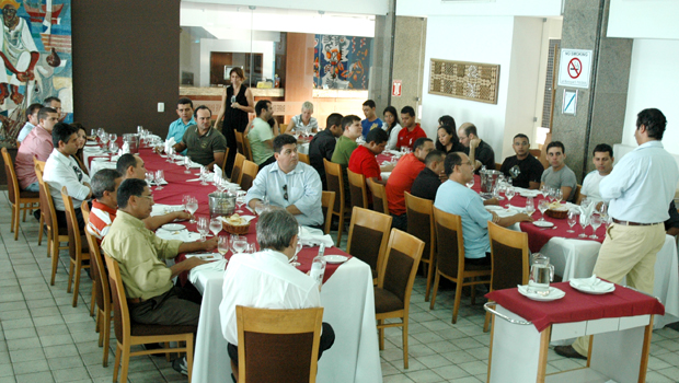 | Maîtres e garçons prestigiaram a palestra do enólogo Paulo Laureano |