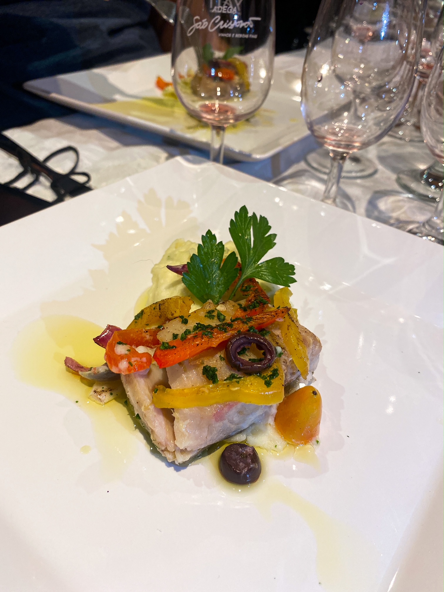 Para harmonizar, um menu em cinco etapas preparado pela chef Kelly Giombelli. Os 20 convidados provaram uma entrada cujas opções foram Vinagrete de polvo/Bolinhos de bacalhau, seguindo-se de um Lombo de bacalhau assado como primeiro prato principal. O segundo prato foi o Arroz de pato e a sobremesa ficou por conta do Pão de ló com calda de chocolate e lâmina de salame de chocolate.