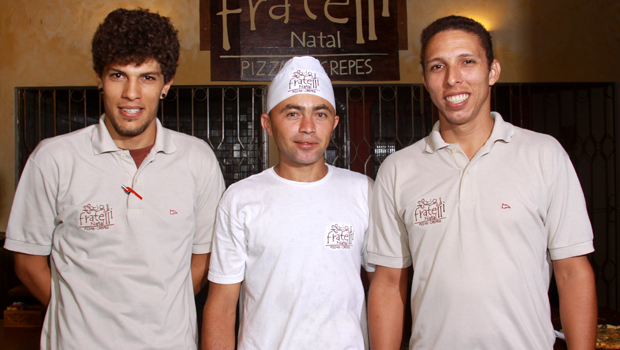 | André Cabral (e), o pizzaiolo Luis Antônio e Alexandre Cabral da Fratelli |