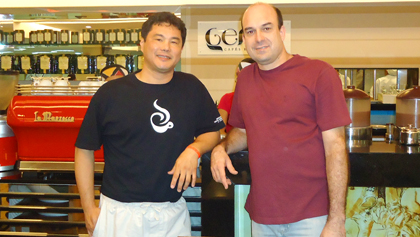 | O especialista em café, Ensei Neto(e) ao lado de Paulo Guillén, proprietário da Genot |