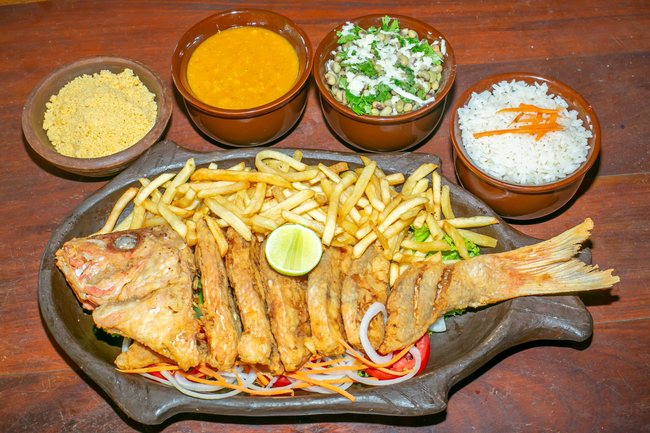 Entre os destaques mais pedidos, está o Camarão Internacional, um dos pratos mais vendidos da casa, além do Peixe inteiro à moda da casa, servido com arroz, feijão, pirão de peixe e macaxeira. Os acompanhamentos também reforçam a identidade regional, como o purê feito exclusivamente de macaxeira e o pirão tradicional, que tem clientes fiéis que visitam o restaurante apenas para saboreá-lo.