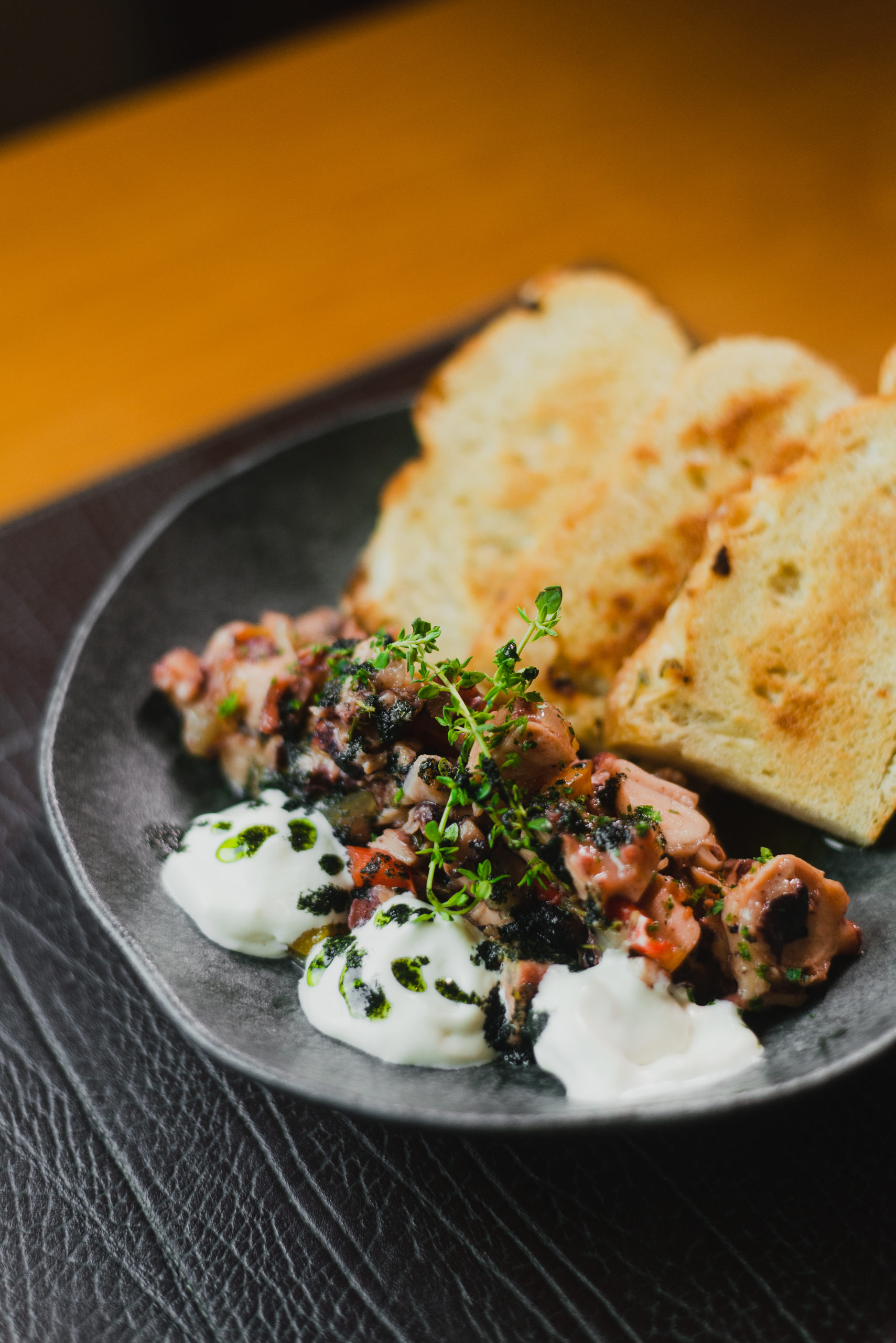 O polvo foi lembrado em uma das entradas novas, o Croc de Polvo: bolinhas crocantes de polvo, legumes e cream-cheese, sobre espuma de limão siciliano e gengibre, além de azeite de alho negro e endro.