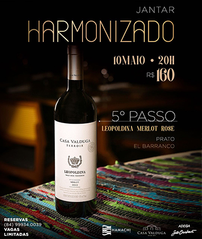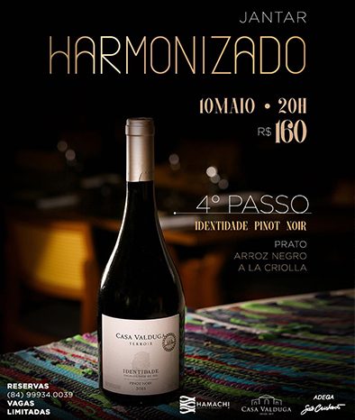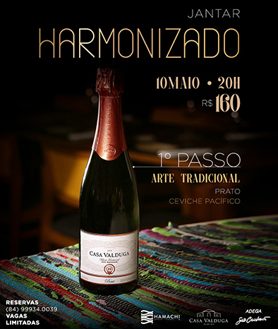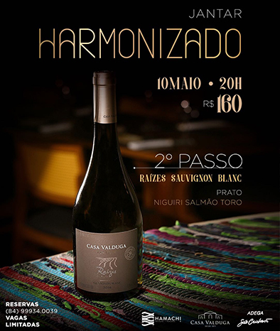 Em parceria com a Adega São Cristóvão, o restaurante Hamachi promove no dia 10 de maio, a partir das 20h, um jantar harmonizado com rótulos da Casa Valduga. É o primeiro evento do ano no estabelecimento, fundado no segundo semestre de 2016 pelos empresários Tiago Gadelha, Heitor Almeida e Felipe Fonseca.