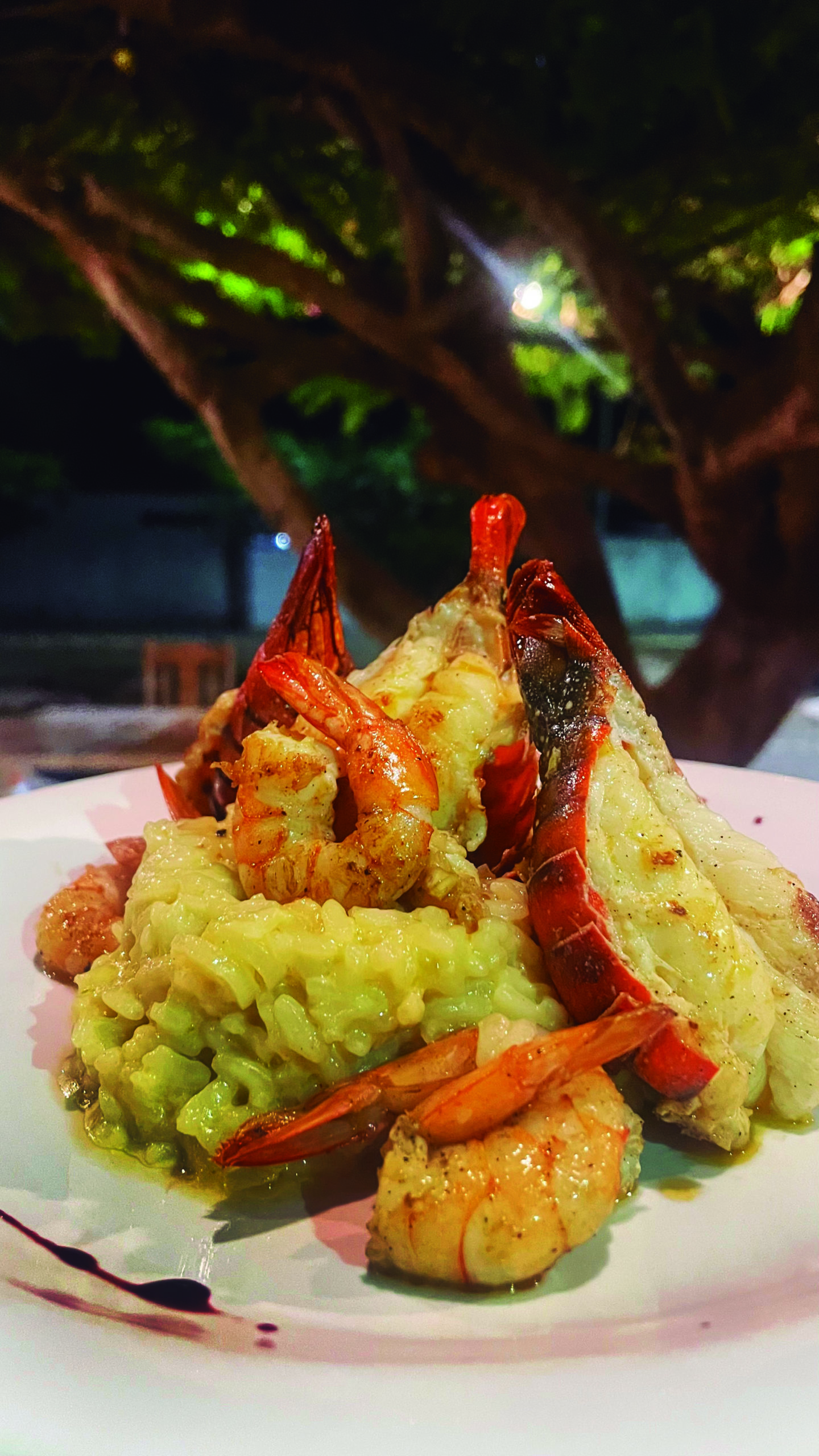 O cardápio tem como foco a cozinha contemporânea, porém priorizando produtos locais, sendo quase a totalidade da própria região de São Miguel do Gostoso, passando, ainda, pela cozinha baiana, devido ao histórico de formação do chef Robson Dias. São ótimas opções de risotos, por exemplo, pratos com camarão, com lagosta e, claro, peixes.