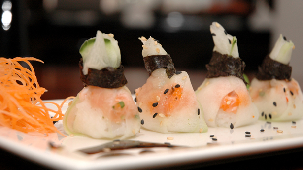 Para esta matéria, o suhiman Ricardo Luciano preparou um prato delicado, o Kappamai Tomodashi Diego, feito com bolinhos de arroz, patê de salmão, cebolinha, ovas e creme cheese envoltos em pepino. Uma delícia que está à sua espera.