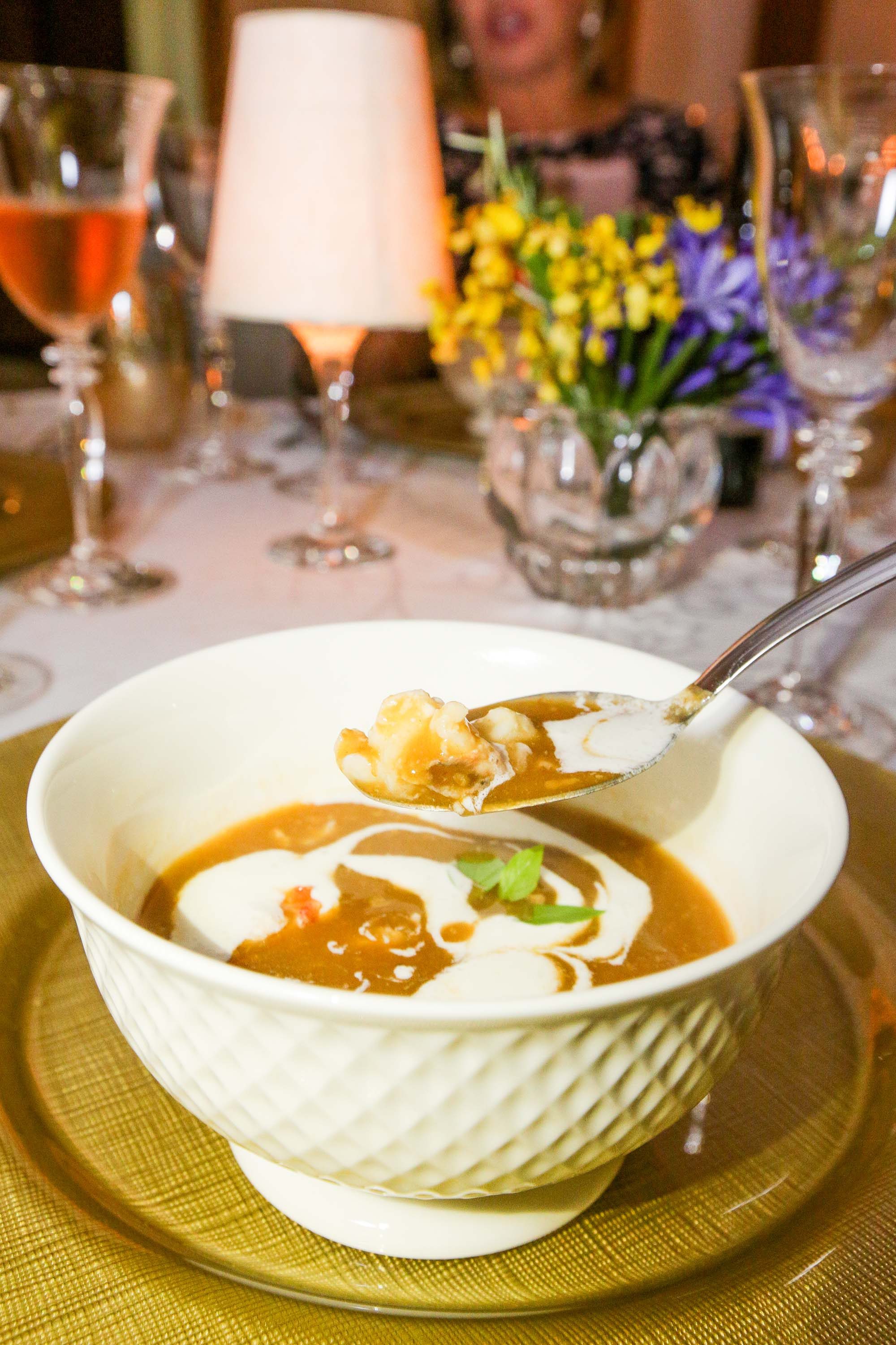 Segundo Milena Nicácio, da equipe da N Wines, a parte gastronômica teve início por um coquetel com pastéis de bacalhau, tapas de chorizo e tapas de presunto, junto ao Quinta de S. Sebastião Branco safra 2017. Seguiu-se o primeiro prato, Rainha do Mar, harmonizado com um Quinta de S. Sebastião Rosé, safra 2016.