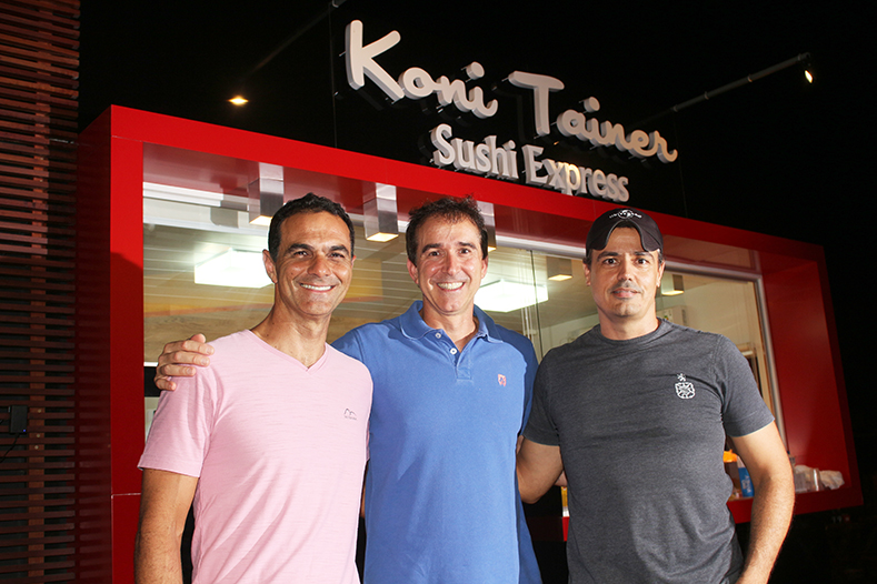 | Antônio Carlos Martins Jr., Fernando Sartorelli e João Carlos Schmidt, sócios do Koni Tainer Sushi Express |