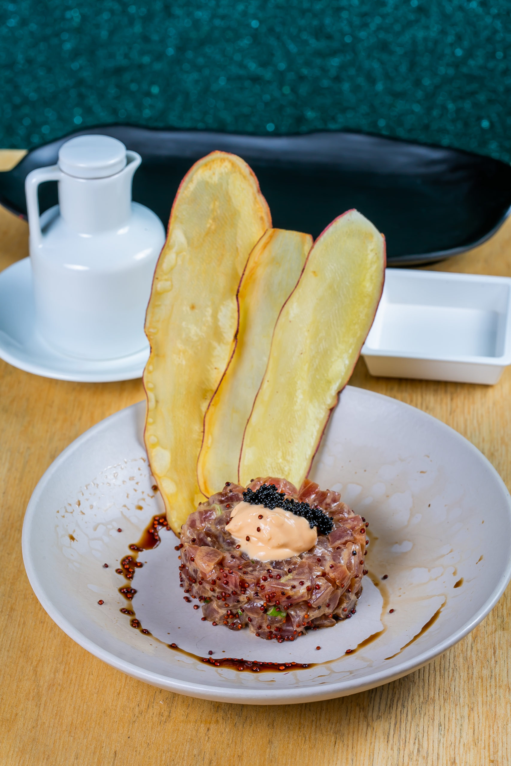 Atualmente, são cerca de 70 itens no cardápio, ainda com perspectiva de ampliação mediante alterações realizadas ao longo do ano. Um exemplo são os temakis, que, em breve, ficarão ainda mais fiéis ao original japonês. Os destaques são os pratos criados na hora pelo chef e sócio Rafael Araújo, como o Niguiri Mix (seis peças com técnicas tradicionais japonesas), o Combinado Omakasse (a partir de quatro unidades em múltiplos de quatro), além do Usuzukuri (peixe cortado em fatias finíssimas e translúcidas), o Combinado Sashimi Moriawase (com os peixes mais frescos do dia) e o Tartar de Atum. No setor das sobremesas, o Harumaki Banoffee e o Brownie de Frutas Vermelhas roubam a cena.
