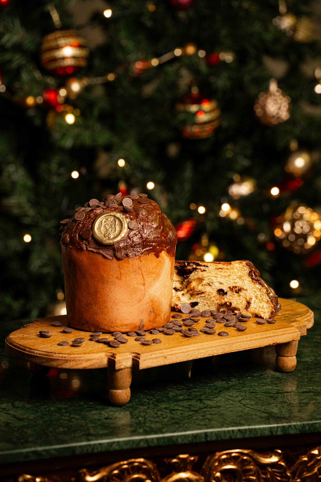 – Panettone aux gouttes de chocolat 550g: Panettone com gotas de chocolate. Elaborado artesanalmente pela nossa boulangerie, este panettone reúne uma massa leve e delicada, enriquecida por gotas generosas de chocolate belga meio amargo, que derretem suavemente a cada fatia. A finalização é um espetáculo à parte: uma delicada chuva de gotas de chocolate belga, que confere textura, brilho e intensidade ao sabor.