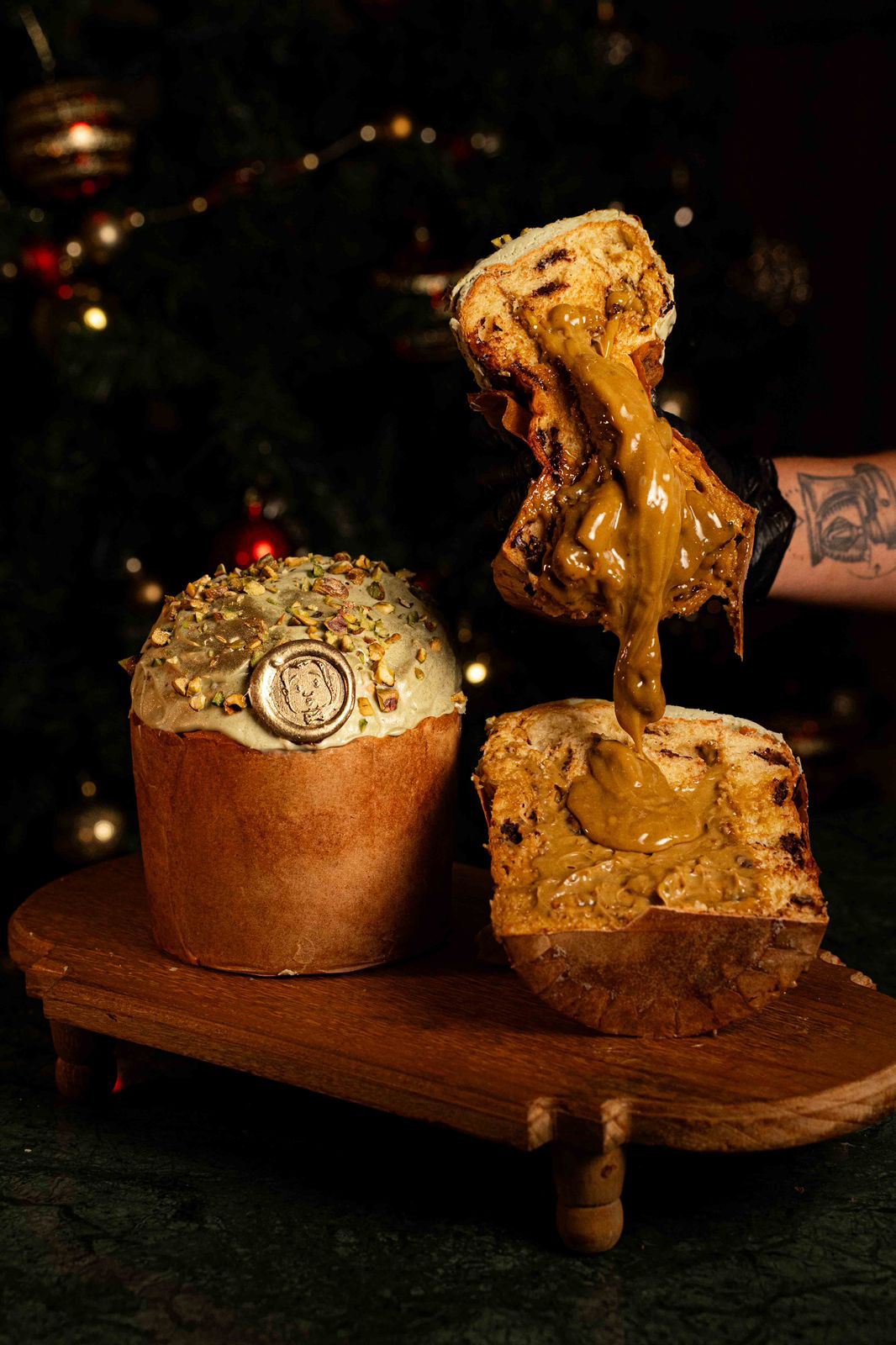 – Panettone truffé à la pistache 800g: Trufado com pistache. Aveludado, sedutor e primorosamente equilibrado, combina o pistache em sua expressão mais nobre ao delicado toque do chocolate, resultando em uma experiência gastronômica rara, sofisticada e verdadeiramente inesquecível.