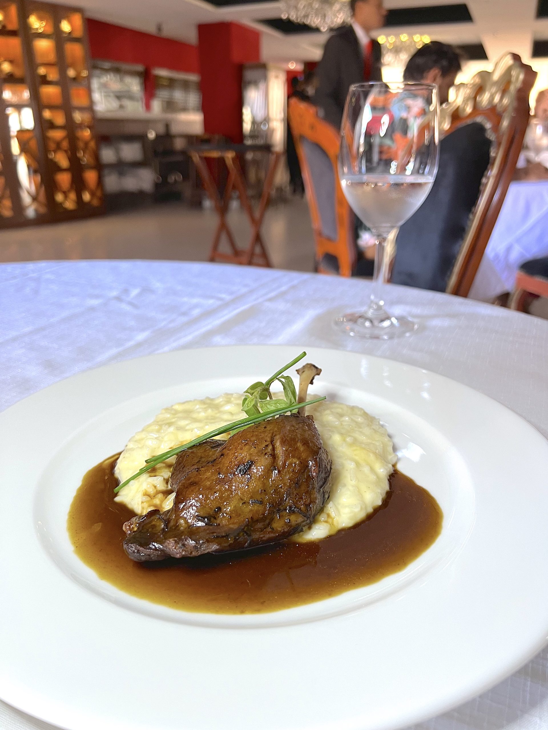 O Arroz de pato é uma das “sugestões do chef” e ganhou uma nova apresentação, porém sem perder a essência. É carregado de sabor e ficou muito bom. Outra boa opção é o Confit de pato com risoto de parmesão. Já a Sopa de frutas vermelhas servida com sorvete de creme é uma sobremesa leve e refrescante. Uma delícia!