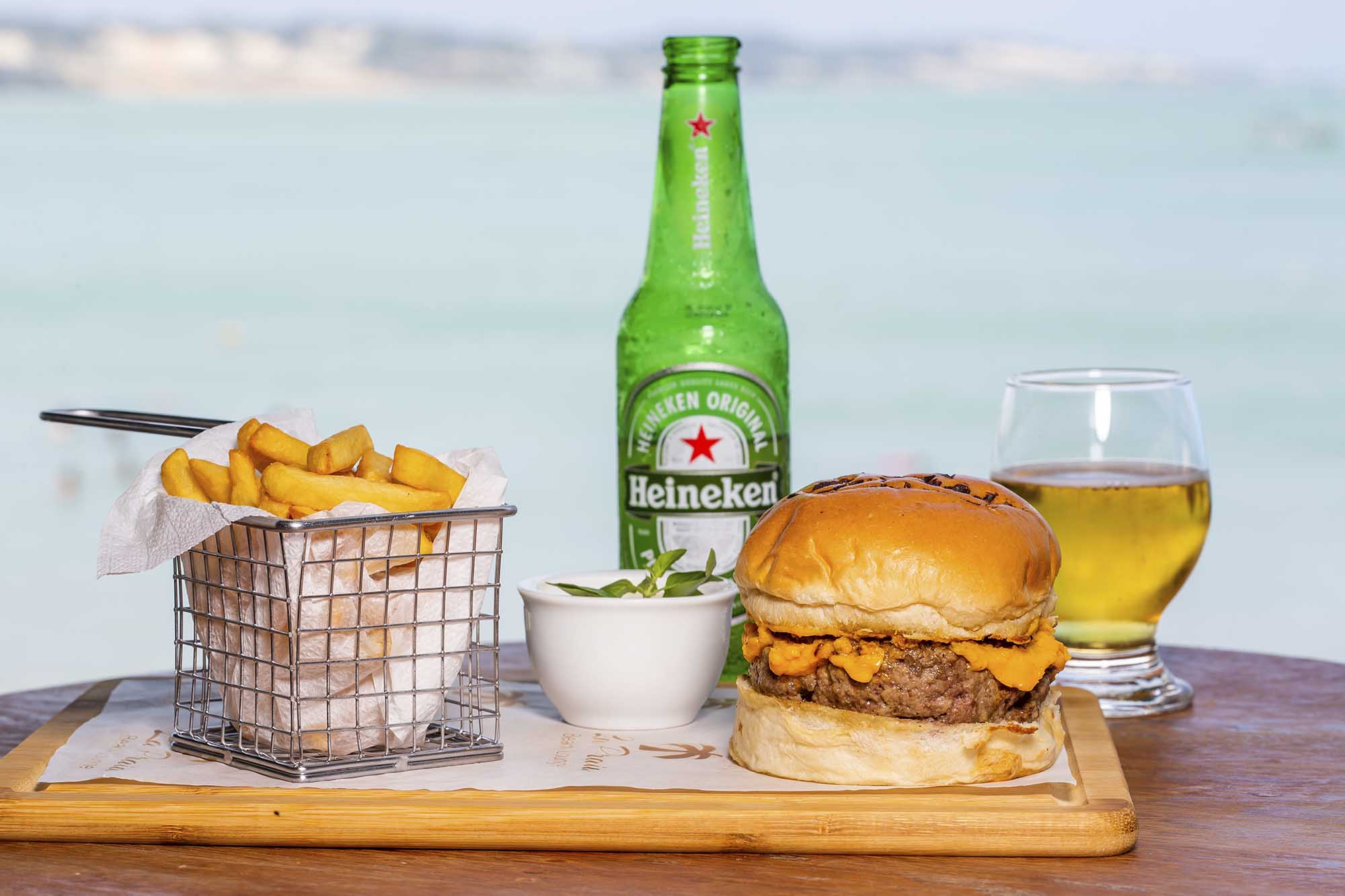 A carta de drinks une os tradicionais, como aperol spritz, clericot, sex on the beach, com criações exclusivas, como o Jovinita, que leva gin, hard seltzer Jovi e pedacinhos de frutas. Mas o drink assinatura é o “La Praia Pink Mist”: uma combinação de gin, energético XS, limão, morango e um toque secreto da casa. Tudo isso servido dentro de uma caixa com luz de led e uma névoa mística de gelo seco por cima. Outras opções são o Tanqueray & Tônica (servido com limão siciliano e alecrim) e o Tropical Gin (gin, Red Bull tropical, gelo e duas rodelas de laranja). É importante destacar que o La Praia é um dos poucos bares oficiais da Heineken em Natal.
