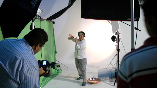 | O fotógrafo Augusto César durante o ensaio com Nívia Pedroza, do Cook e Luxo |