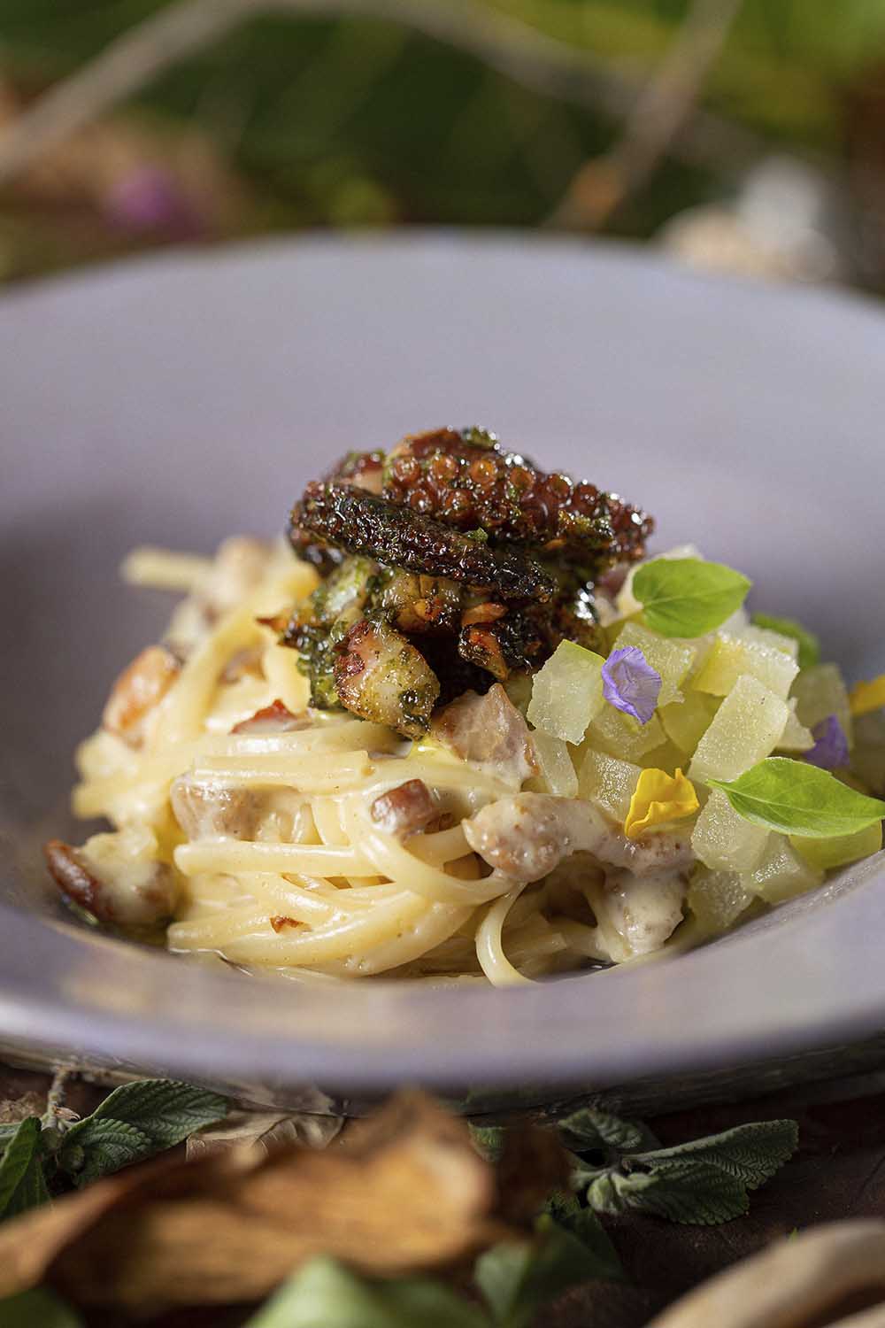 Dos pratos principais, um dos destaques é o Raviolone de codorna com massa de flor de clitória, crudo de lagosta, creme de parmesão, champagne e gastrique de jabuticaba. Dentre as sobremesas, o sucesso é o “Pudim ao cubo”: porção de pudim tradicional com cremoso de pudim e espuma de pudim, acompanhado de crumble de amêndoas.