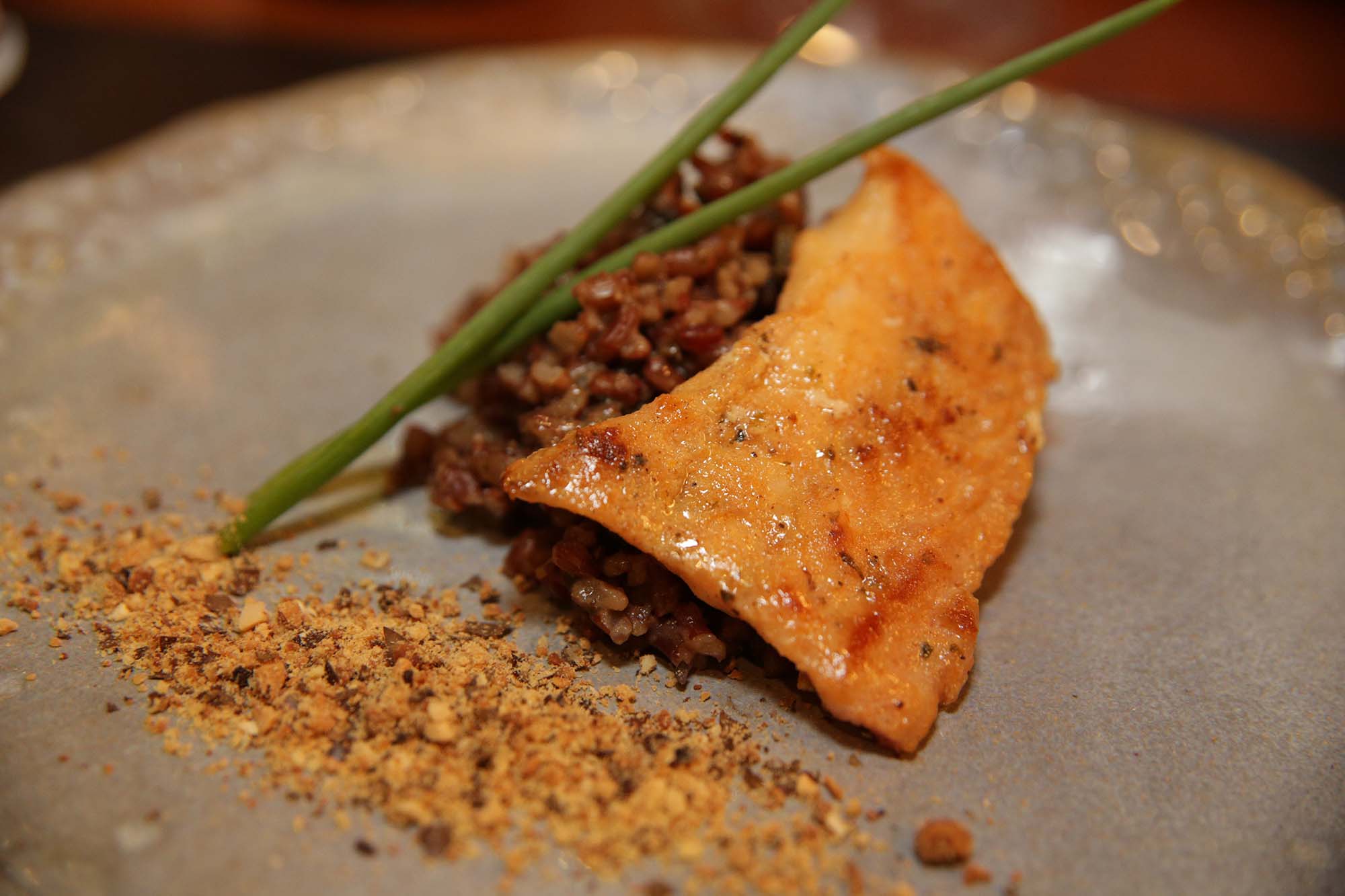O pato na forma de Confit de Canard com mousseline de baroa, roti de mel de engenho e farofa de Baru