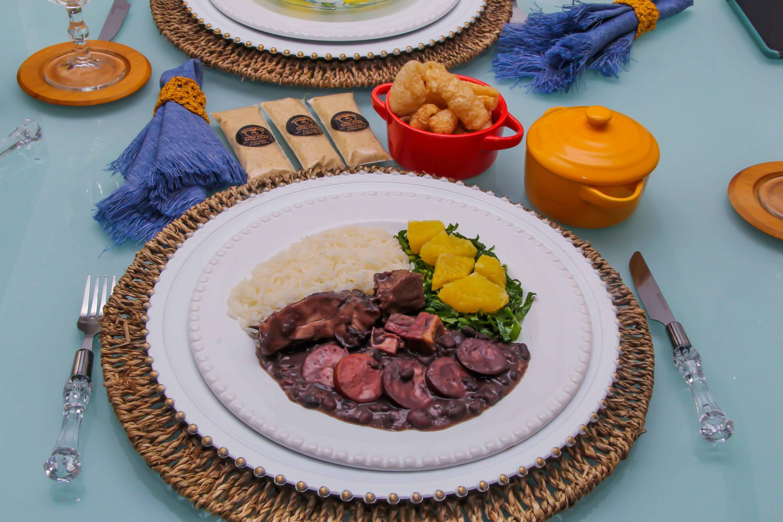 O formato da feijoada é aquele conhecido como “à moda paulista”, acompanhando arroz, farofa, torresmo, couve à mineira, laranja e um docinho de sobremesa. Três tipos de linguiça fazem parte da receita (paio, calabresa e portuguesa), além de pé, rabo, orelha, carne de sol, lombo e costelinha suína.